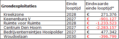 - De financiële gevolgen van de gemeentelijke projecten voor de begroting (de reserve Grondexploitatie).
