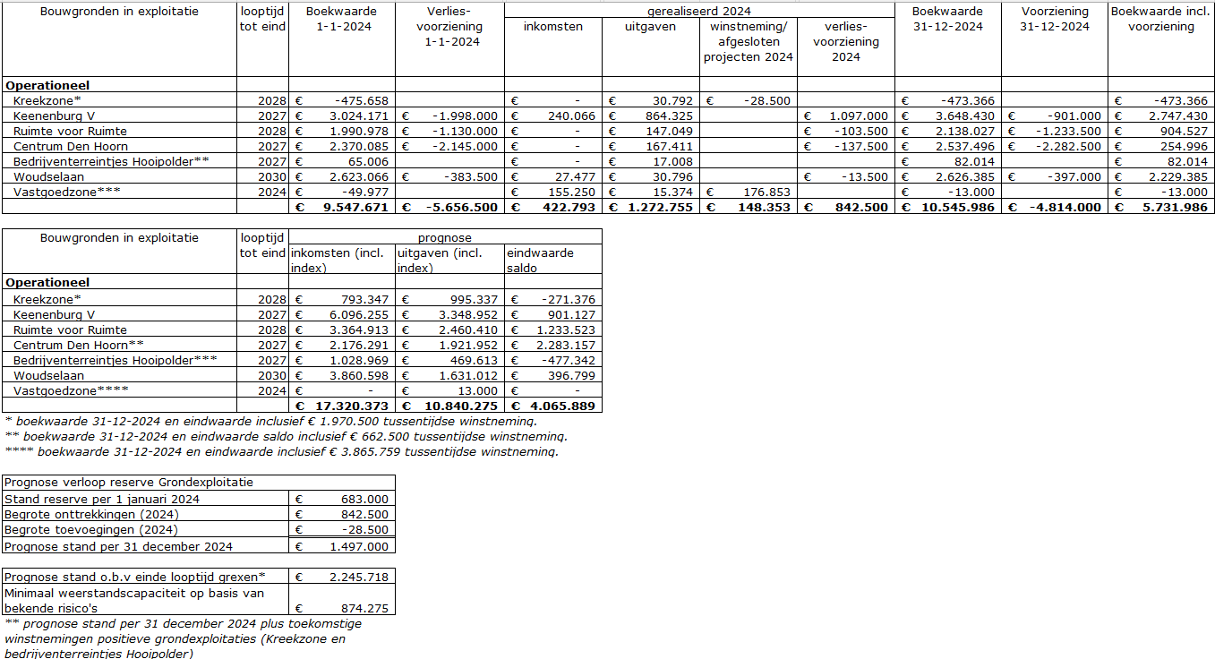 - De financiële gevolgen van de gemeentelijke projecten voor de begroting (de reserve Grondexploitatie).